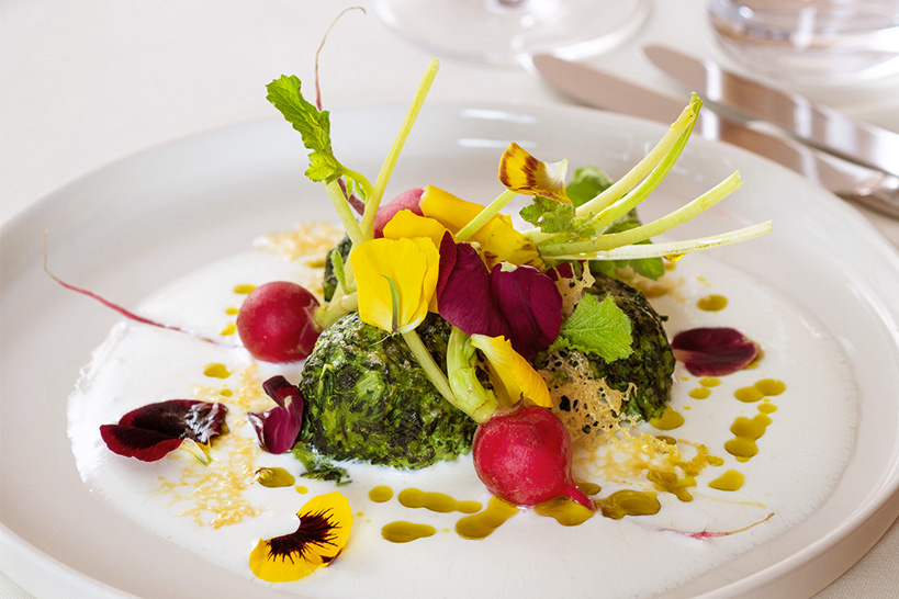 Natürliche und regionale Zutaten, feine schweizer Küche in St. Moritz. Charmant, lebensfroh und voller Genuss und diversen Einflüssen aus der ganzen Welt innovativ verarbeitet.